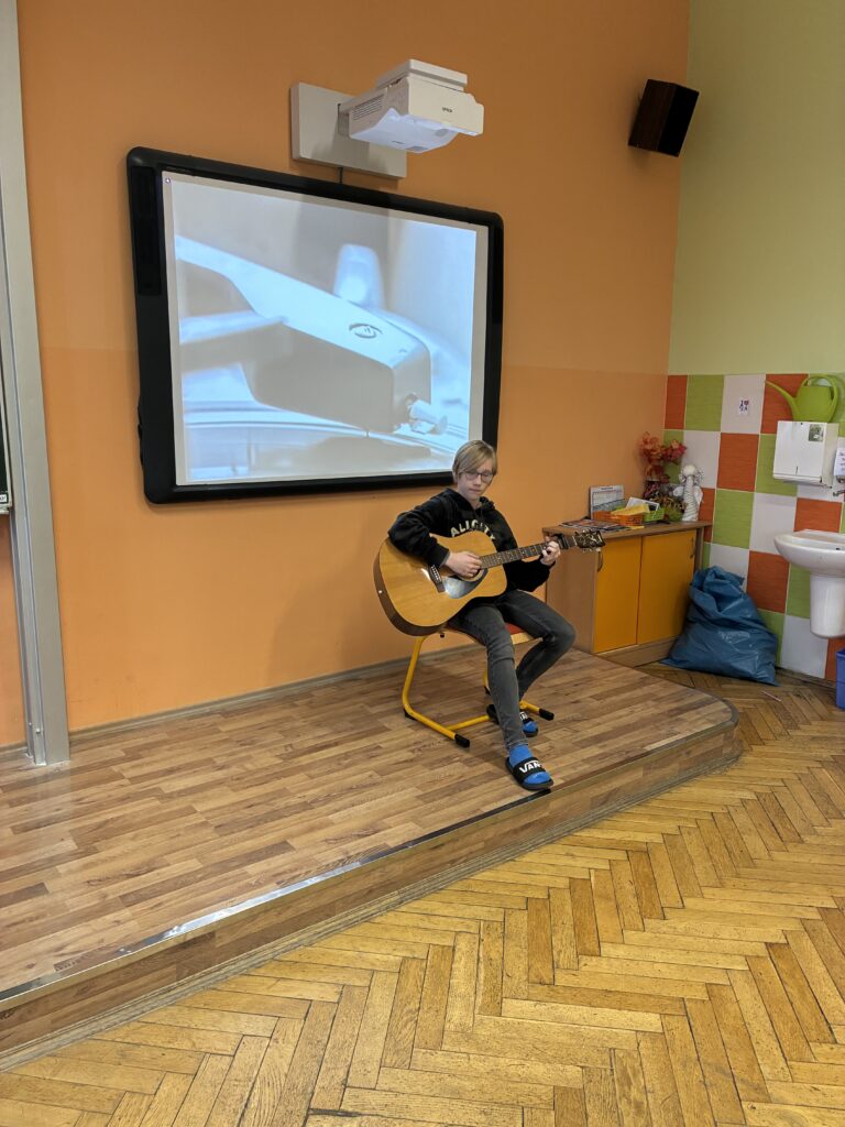 Na začátku prosince se v hodině Hudební výchovy uskutečnila jedinečná akce s názvem „8.B má talent“, během níž měli žáci možnost předvést své dovednosti, záliby a skryté talenty. Atmosféra ve třídě byla slavnostní a přátelská – každý účinkující měl podporu svých spolužáků i třídní učitelky.