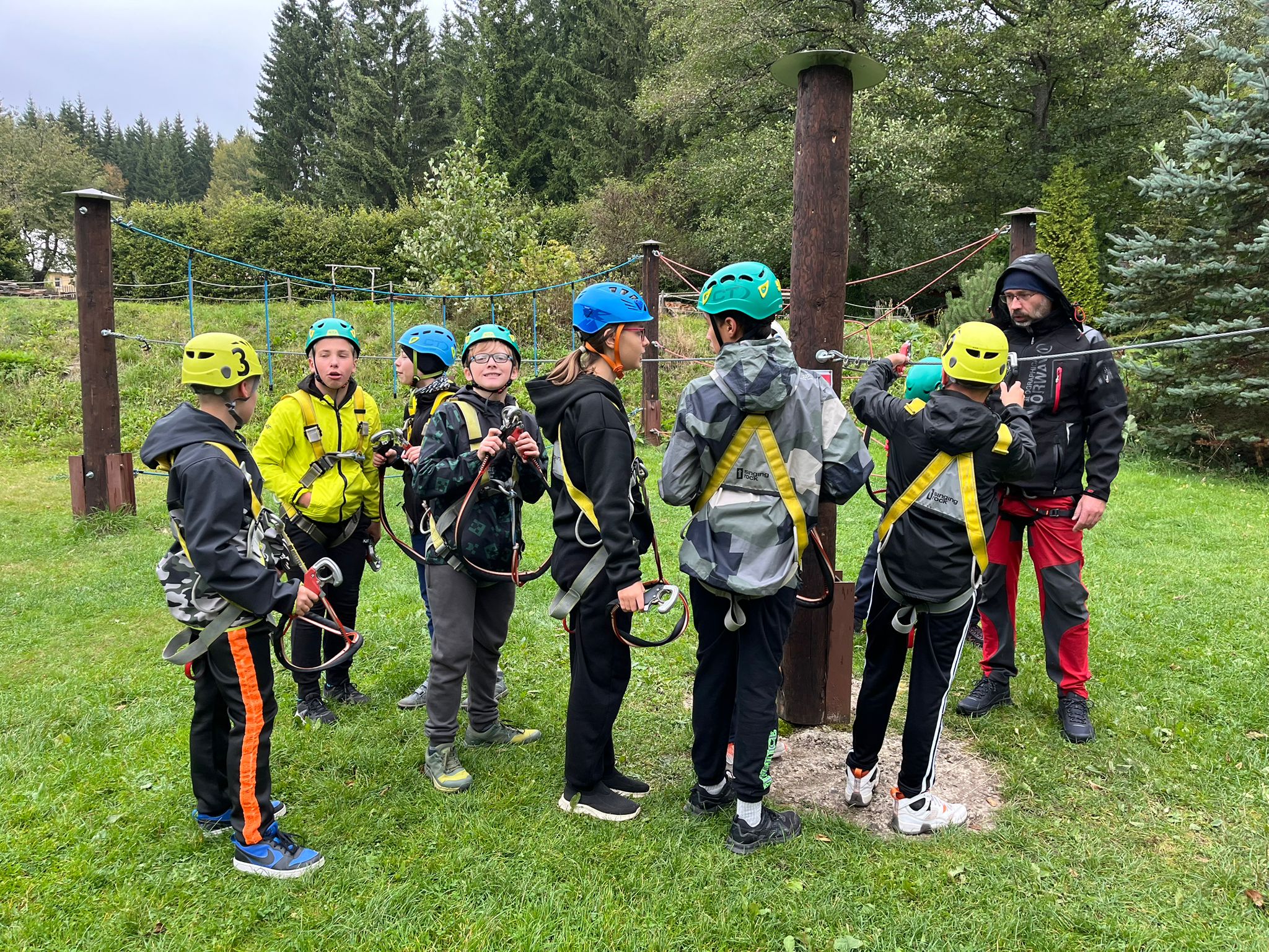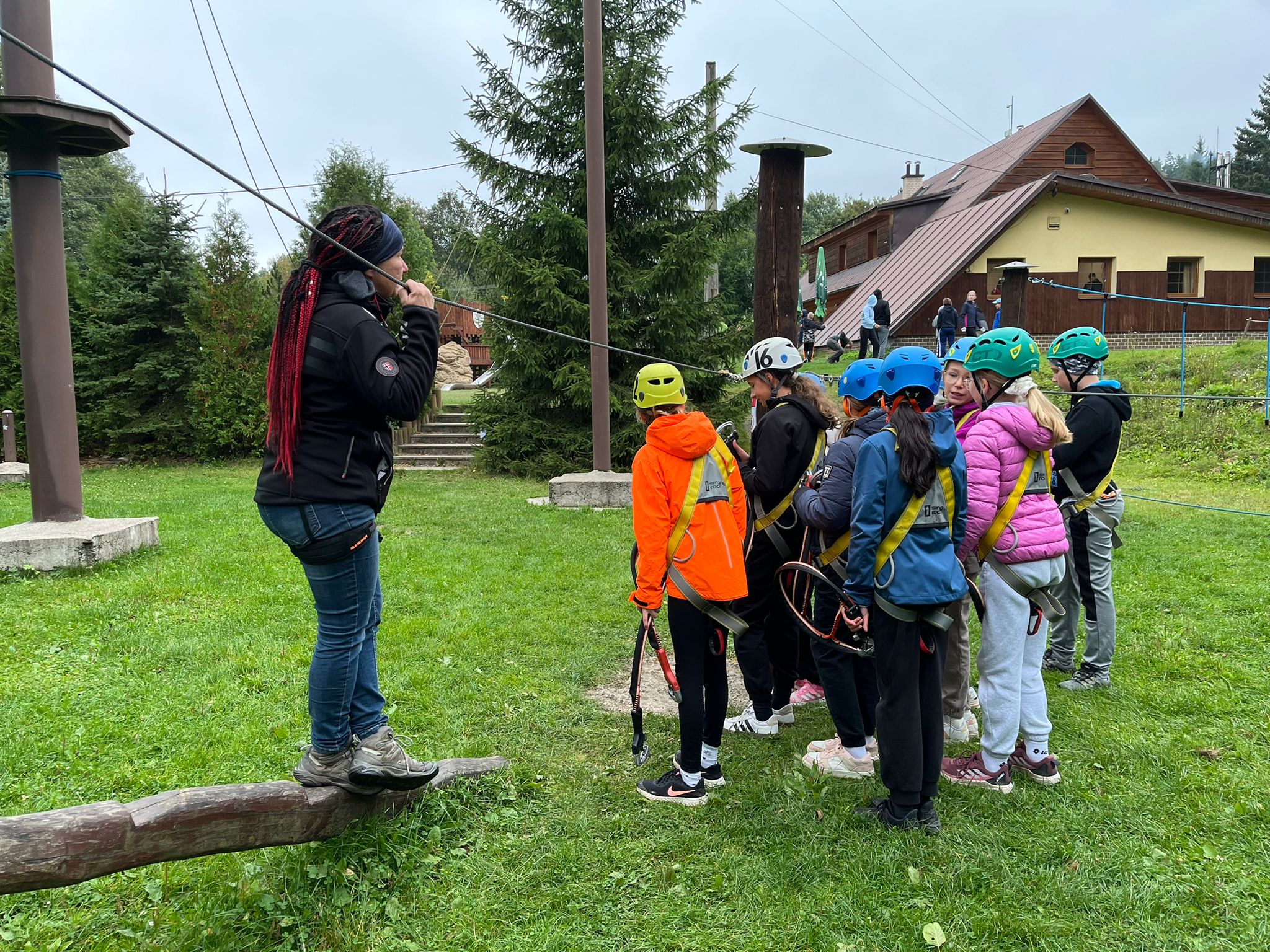 Ve středu 24. září jsme plni očekávání odjeli na adaptační kurz do přírody u Starého města (Rýmařov). Již v 10 hodin jsme dorazili na místo a vydali se na první procházku lesem. Ubytování pro nás bylo zajištěno v chatě „Orientka“, která láká hosty na dobré jídlo, pěkné prostory, klidné okolí, vnitřní bazén, a především se pyšní skvělým lanovým centrem. Každý den jsme měli nabitý program plný seznamovacích, společenských a dobrodružných aktivit. Počasí nám v době pobytu sice moc nepřálo, ale to nám náladu nepokazilo. Každé ráno jsme vyběhli do lesa a rozcvičili jsme se. Poté byla snídaně. Dopolední i odpolední program pro nás připravili instruktoři Martin, Ema a Linda. Na chatu s námi odjeli i naši učitelé: paní učitelka Pavla Kopp, paní učitelka Ilonka Táborská, paní učitelka Iveta Fišerová a pan učitel Jakub Šebela. Na chatě Orientce se nám moc líbilo, aktivity jsme si užili a máme na co vzpomínat.