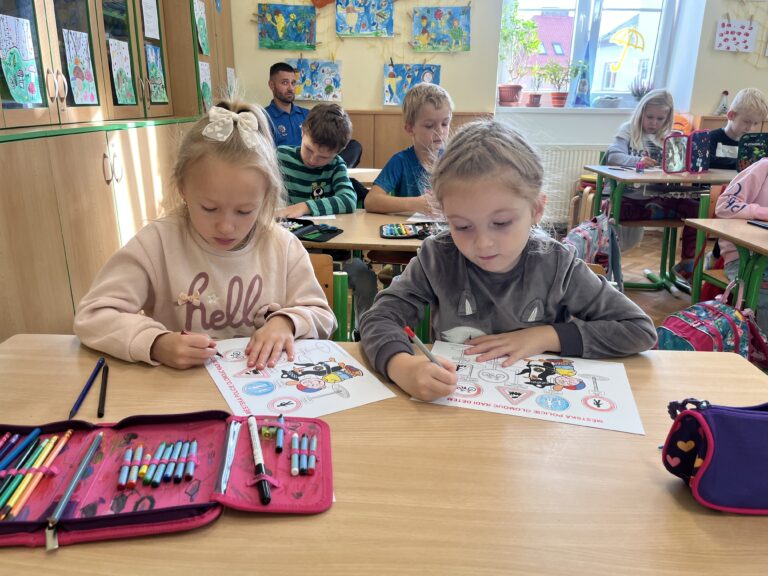 Prevenci bezpečné cesty do školy a správnému chování v dopravním provozu se věnovali v 1. a 2. ročníku. Jak a kdy přecházet vozovku, ale i dodržování pravidel silničního provozu při jízdě automobilem s rodiči, jsou pro malé školáky cennými informacemi na celý život.