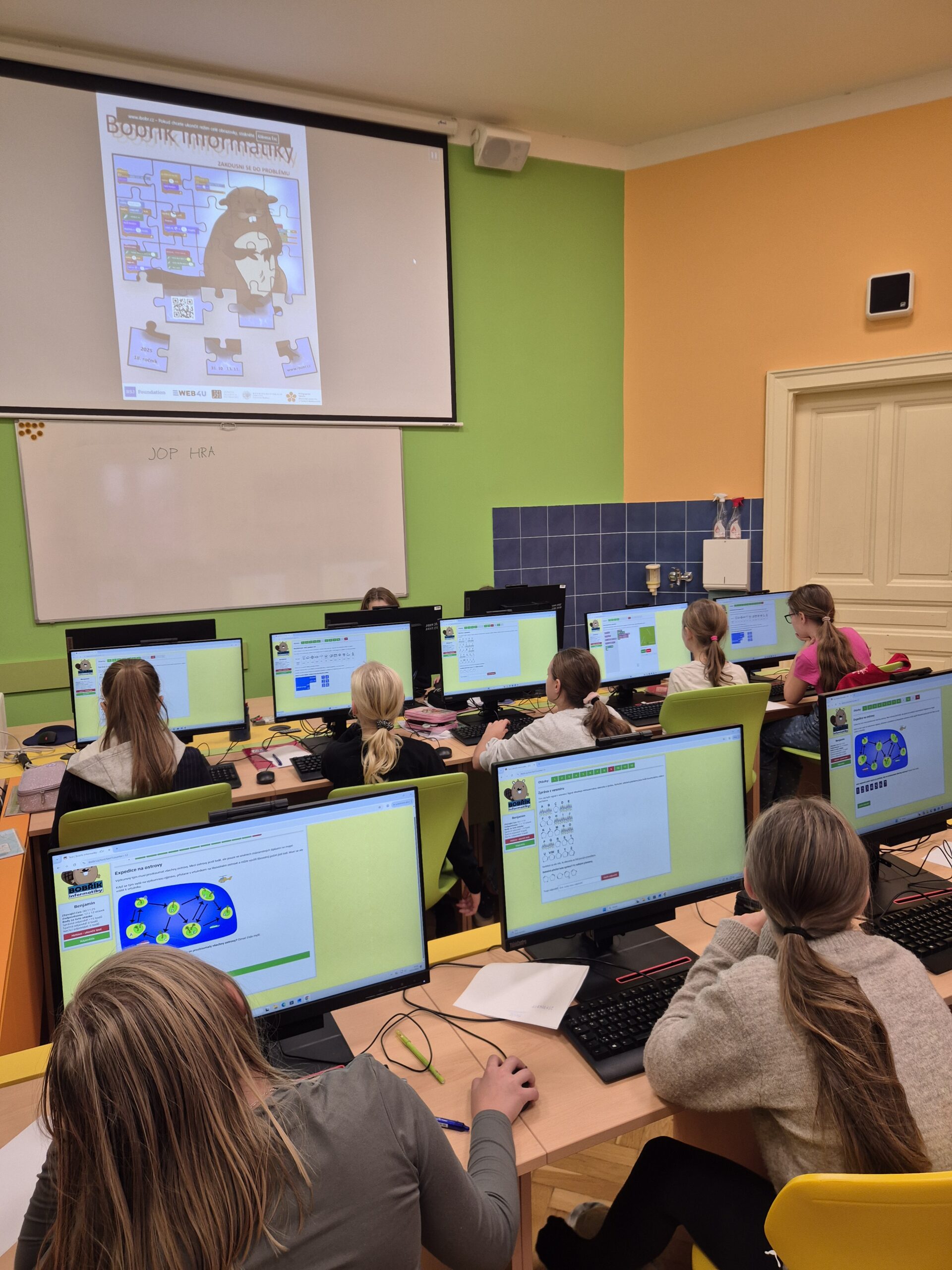 V týdnu od 10. do 14. listopadu 2025 se žáci pátých až osmých ročníků zúčastnili školního kola celostátní soutěže Bobřík informatiky. Tato předmětová soutěž je určena bystrým a zvídavým žákům, kteří mají zájem o svět moderních technologií a chtějí rozvíjet své informatické myšlení.