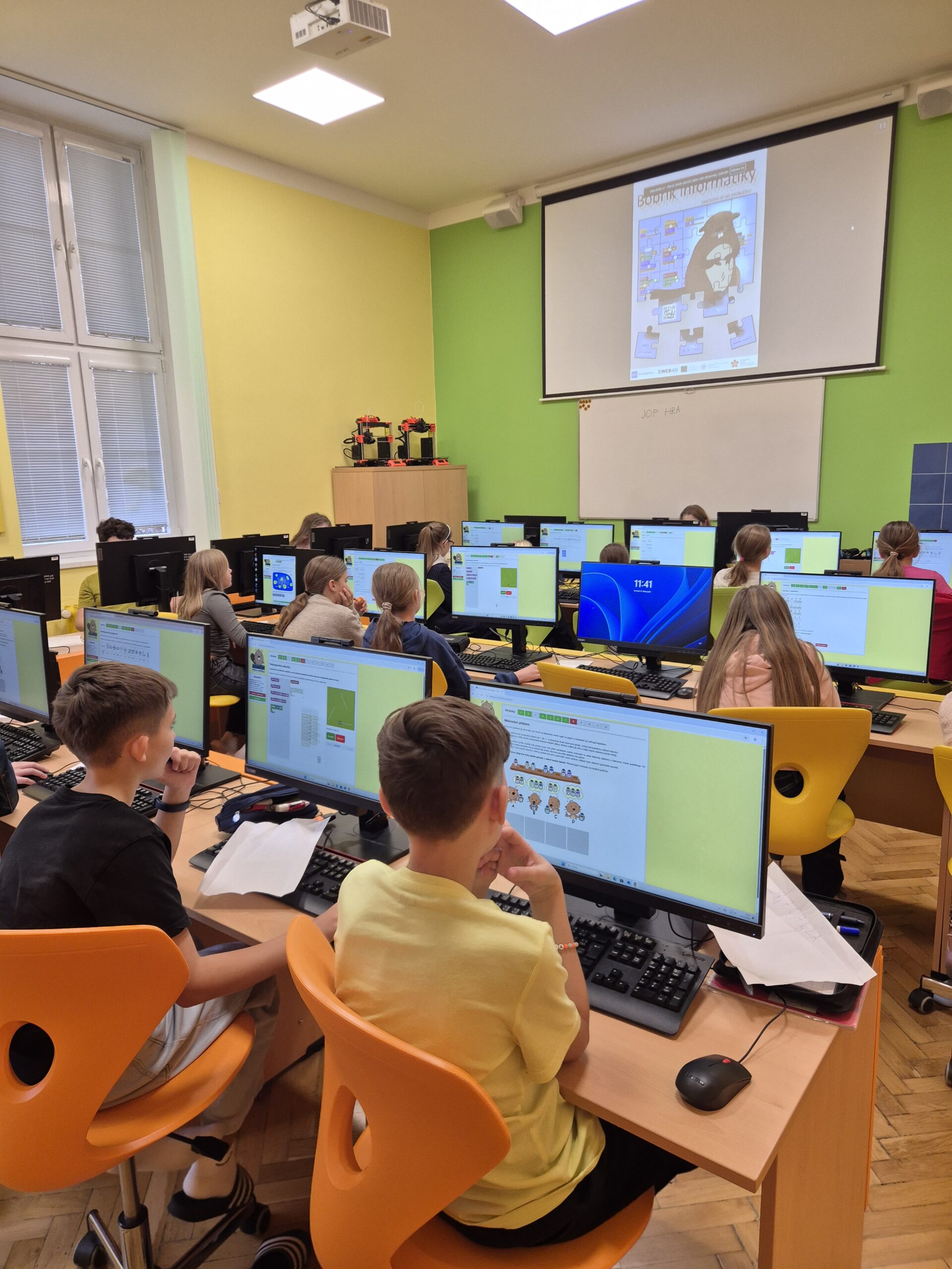 Soutěžící plnili online test, ve kterém vybírali správné odpovědi, přemisťovali objekty na obrazovce nebo sestavovali jednoduché programy z bloků. Úlohy prověřily jejich logické uvažování, schopnost plánovat, analyzovat a hledat kreativní řešení. Testování probíhalo v počítačové učebně a žáci se do soutěže pustili s chutí a velkým odhodláním.