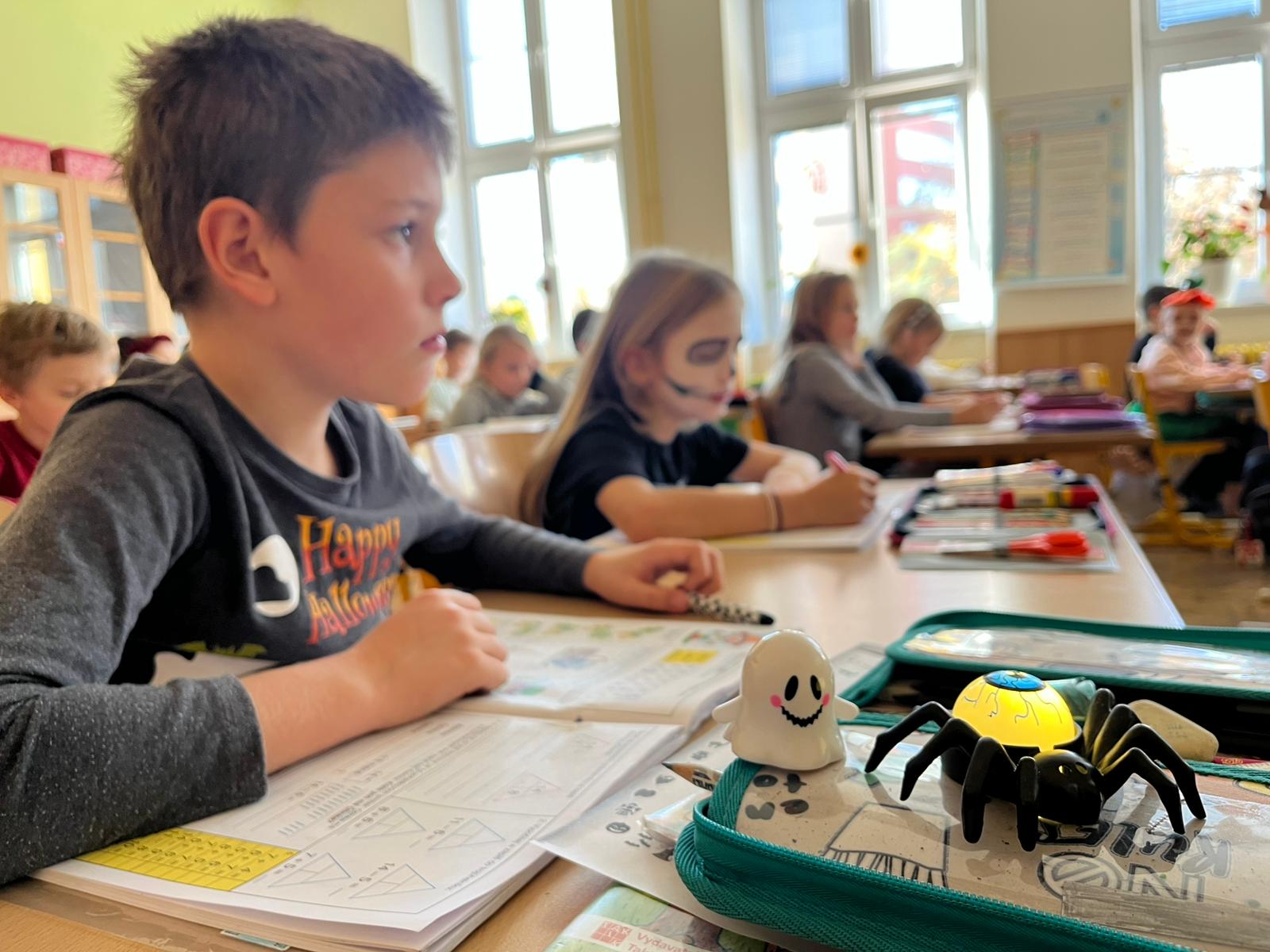 Poslední říjnový den se naše škola proměnila v místo plné čarodějů, duchů, kostlivců i dalších kouzelných bytostí. Děti i vyučující dorazili v nápaditých maskách a převlecích, které vytvořily úžasnou, tajemnou a trochu strašidelnou atmosféru.