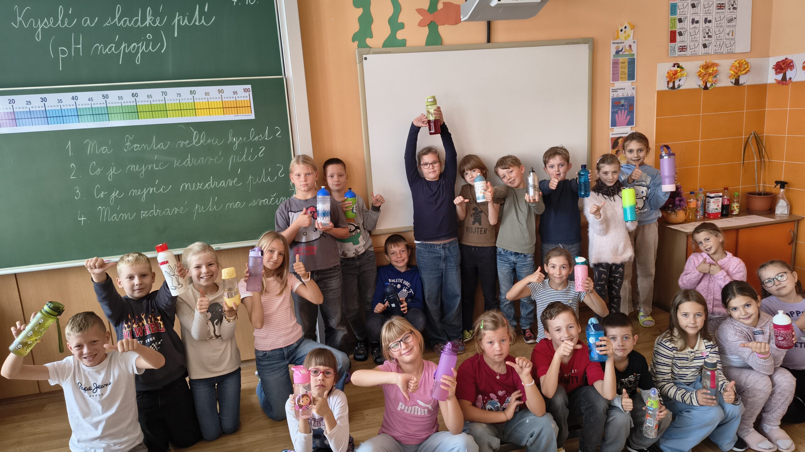 V rámci této lekce se žáci stali malými vědci. Pomocí indikátorových proužků testovali pH různých nápojů (džusy, čaje, mléko, limonády, vodu) a porovnávali jejich kyselost či zásaditost. K překvapení mnohých se ukázalo, že některé sladké nápoje měly velmi nízké pH, což je činilo kyselejšími, než se na první pohled zdálo. Kromě chemické podstaty se lekce zaměřila i na praktické dopady zjištění. Děti přemýšlely o vlivu kyselých nápojů na zubní sklovinu a zdraví. Každý žák také provedl měření u svého pití, které si donesl na svačinu, a vyhodnotil, zda patří mezi zdravé či nikoliv.