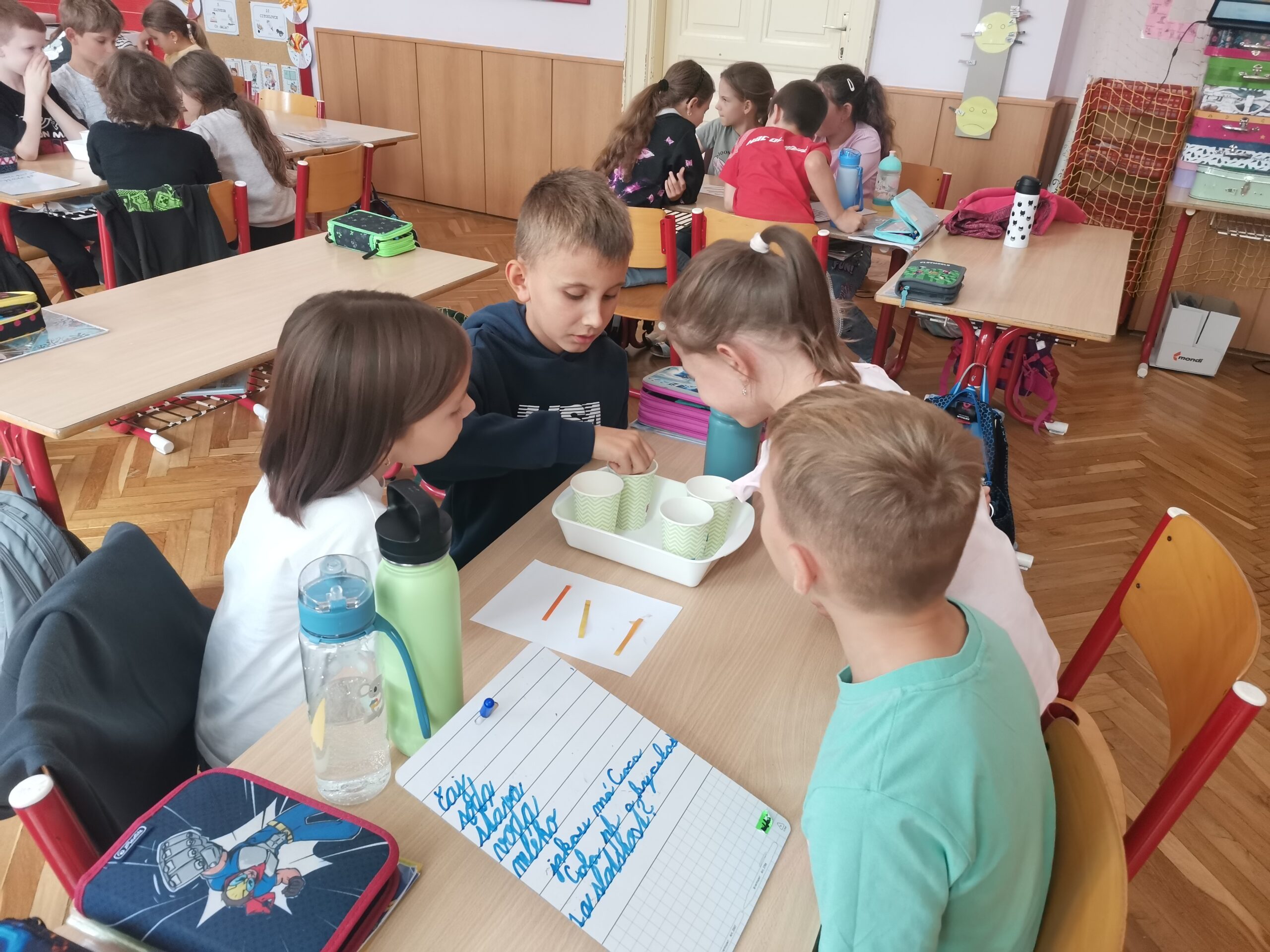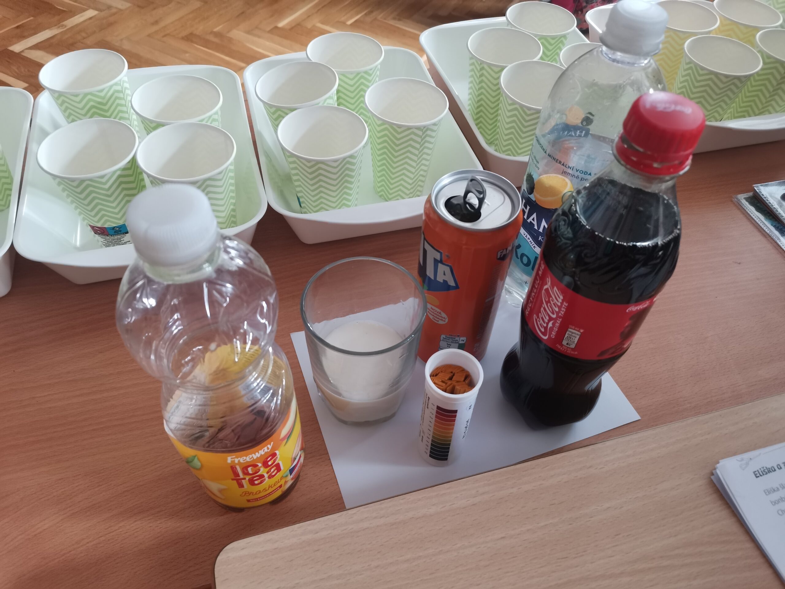 V rámci této lekce se žáci stali malými vědci. Pomocí indikátorových proužků testovali pH různých nápojů (džusy, čaje, mléko, limonády, vodu) a porovnávali jejich kyselost či zásaditost. K překvapení mnohých se ukázalo, že některé sladké nápoje měly velmi nízké pH, což je činilo kyselejšími, než se na první pohled zdálo. Kromě chemické podstaty se lekce zaměřila i na praktické dopady zjištění. Děti přemýšlely o vlivu kyselých nápojů na zubní sklovinu a zdraví. Každý žák také provedl měření u svého pití, které si donesl na svačinu, a vyhodnotil, zda patří mezi zdravé či nikoliv.