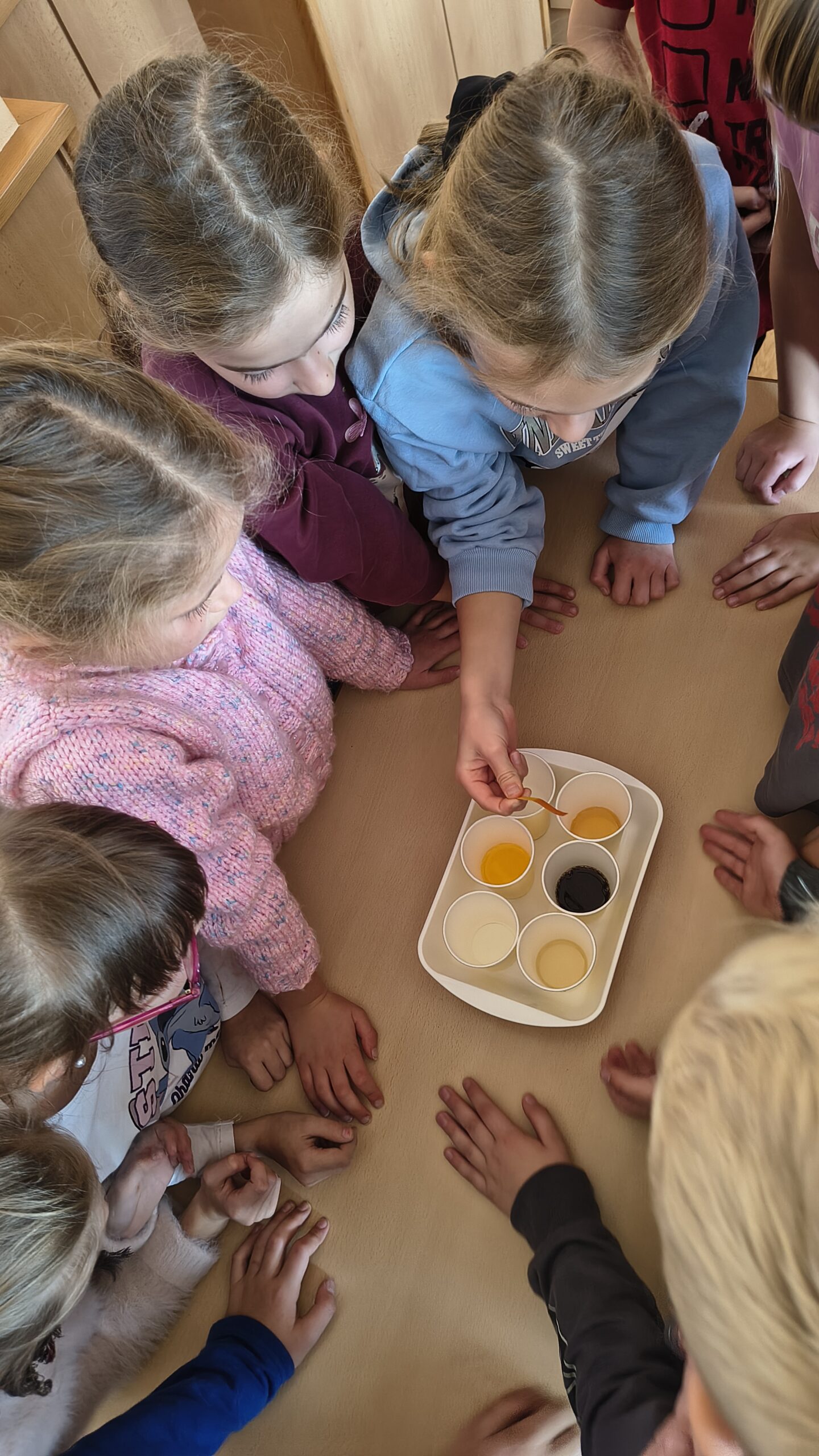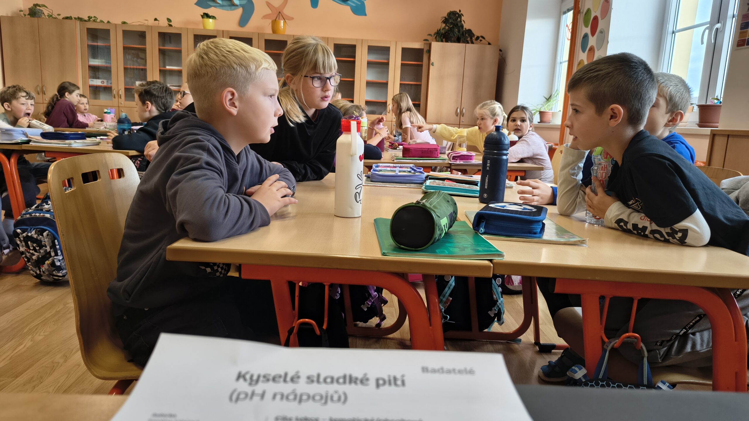 Mnoho dětí miluje sladké nápoje. Málokdo z nich ale ví, že i přes svou sladkou chuť mohou být silně kyselé. Na tuto záhadu jsme se ve třetích ročnících zaměřili v badatelské lekci „Kyselé a sladké pití (pH nápojů)“. Cílem bylo naučit děti vědecky přemýšlet a zároveň jim ukázat vliv nápojů na jejich zdraví.