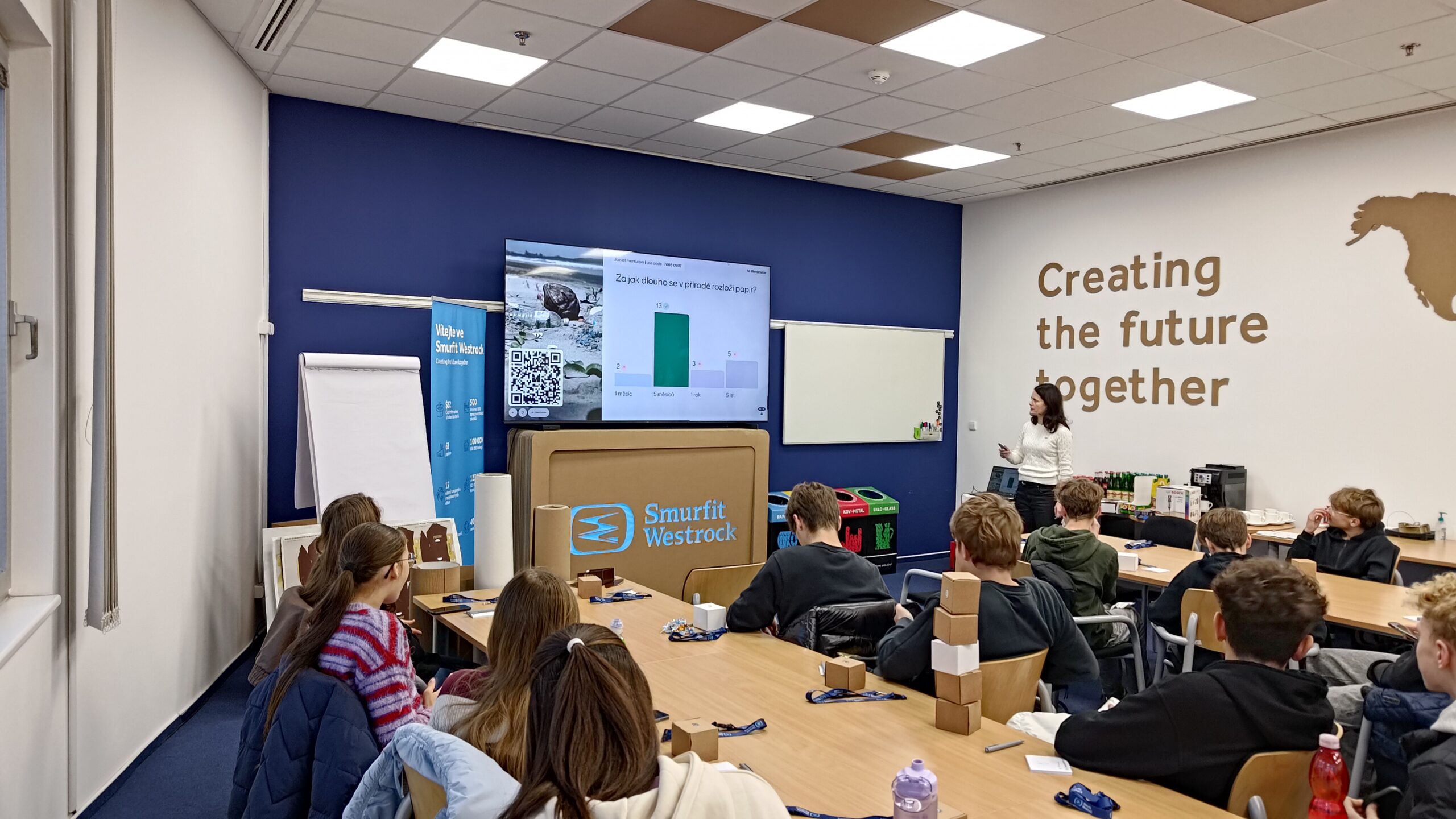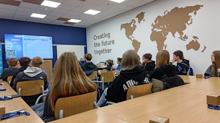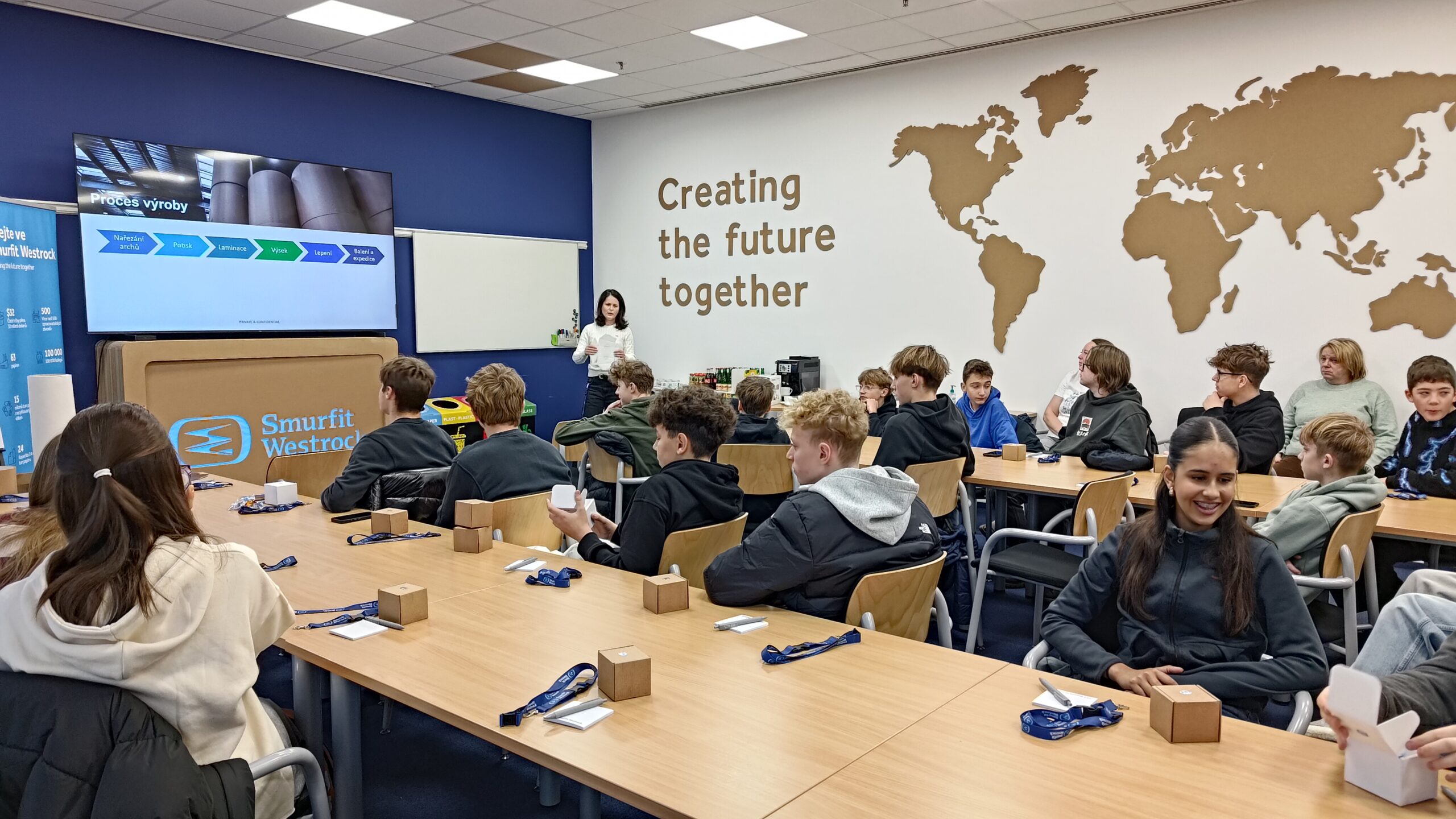 Hned na začátku se žáci dozvěděli, jak celý proces výroby probíhá, a podívali se také na různé typy obalů. Povídali jsme si i o ekologii – o tom, jak výroba ovlivňuje životní prostředí a co firma dělá pro to, aby byla co nejšetrnější. Bylo hezké vidět, že žáky opravdu zajímalo, jak se dá výroba „dělat zeleněji“.
