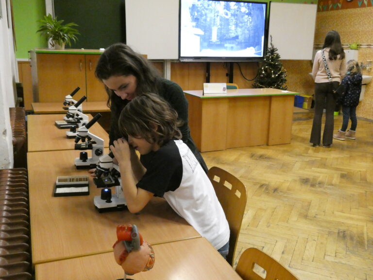 V přírodopisné učebně byla k vidění projekce žákovského herbáře, mikroskopování trvalých preparátů pomocí moderních mikroskopů i ukázky vycpanin a přírodnin. V učebně chemie byly představeny aktivity z matematiky a chemie, pomůcky využívané při výuce, ukázky laboratorního skla a měřicích přístrojů. Pro nejmenší návštěvníky byly připraveny také lavice s logickými úkoly, bludišti a hádankami.
