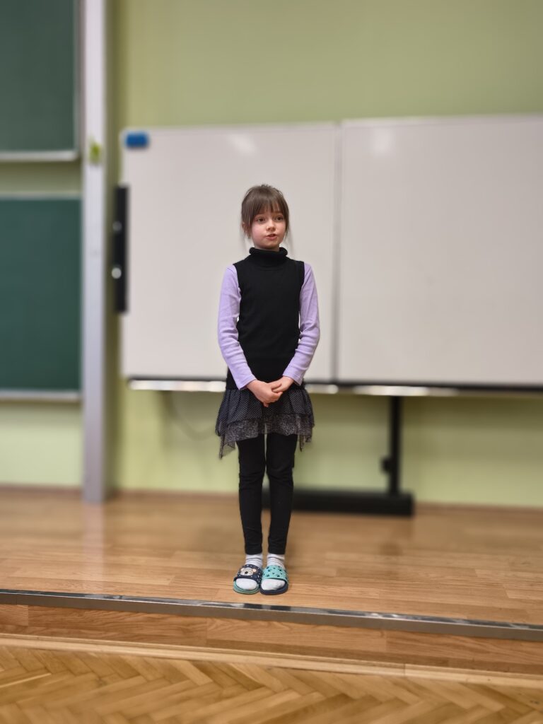 Velkou pochvalu si určitě zaslouží všichni účinkující. Ale jak to u soutěží bývá, každá má i své vítěze. Mezi mladšími žáky zvítězila svým přirozeným projevem žákyně 2.B a druhé místo obsadila její spolužačka. Na třetím místě skončila žákyně 3.A