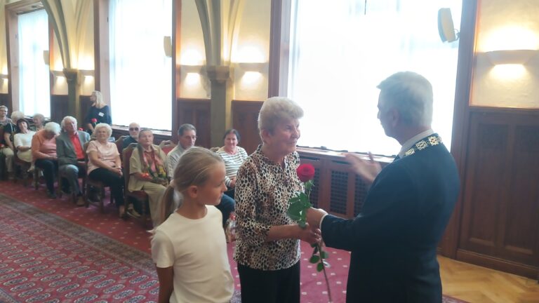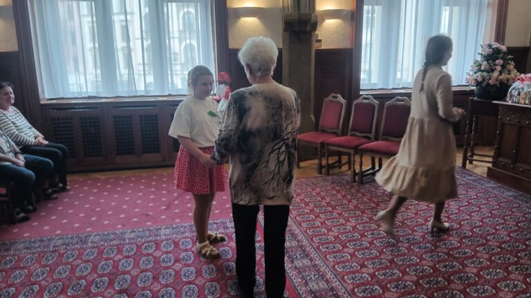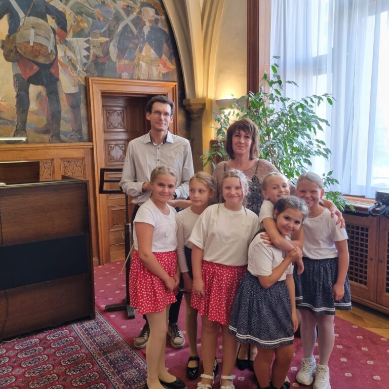 Září teprve otevřelo dveře škol a na tu naši se opět obrátila s žádostí o vystoupení pro jubilanty Olomoucká radnice. Po prázdninách jsme oprášily program, trochu přeobsadily účinkující a ve čtvrtek 18. září odpoledne si to sluncem zalitým městem zamířily do slavnostního sálu, kde na nás čekali Olomoučané z generace prarodičů a praprarodičů našich děvčat. Kromě vlastního programu jsme si na závěr zazpívaly i s lidovým souborem Bobule, který se na naše spoluúčinkování moc těšil. Ovšem, my také. Společnou fotku sice nemáme, ale naše sukénky s lidovými kroji i zvučné hlasy obou generací krásně ladily. Veselý smích zářijových oslavenců i slzičky radosti jsme jako vždy přijímaly s velkou pokorou a láskou k našim dříve narozeným.